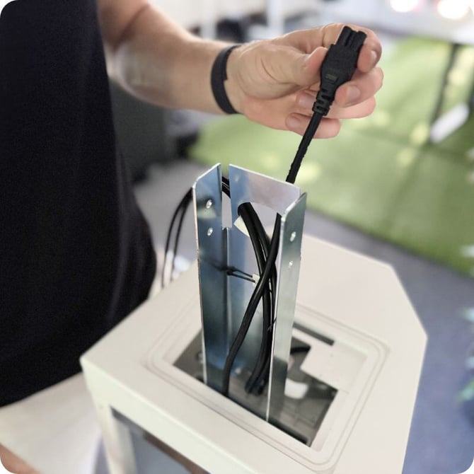 Plug the power cable (of the socket) into your power outlet. Give the Wingfield Box a few seconds to wake up. 🥱
