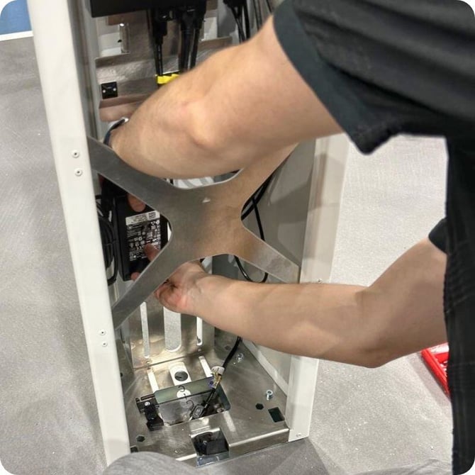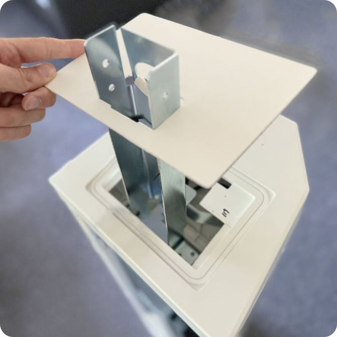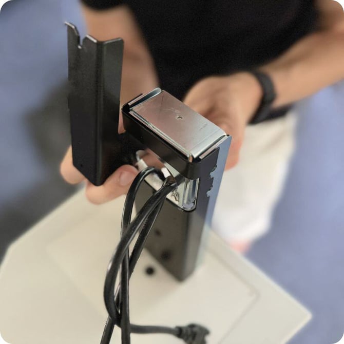 💡Pro tip: If the plate does not slide directly into the hole, pull the Display Mount slightly backward to relieve tension on the plate and then press the plate into the hole again.