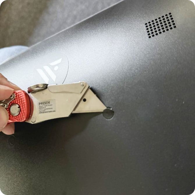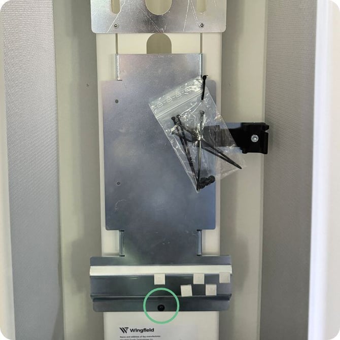 Remove the black screw on the bottom of the Vesa mount and take it off from the Wingfield Box Body.