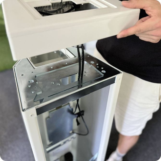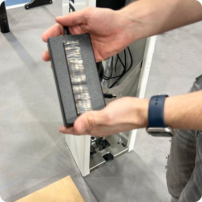 ⚠️ Attention: Make sure that the ports for the cables are facing upwards.